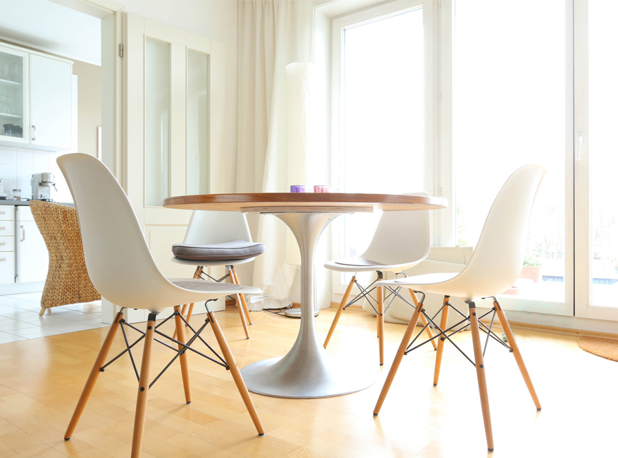 Ein modernes Gefühl mit Design Klassiker die dem Essbereich eine helle Leichtigkeit verleihen.